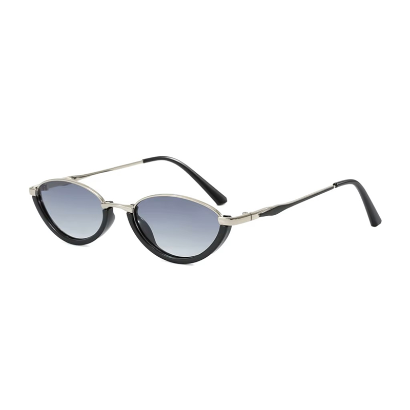 Com um formato inspirado no clássico cat-eye, estes óculos de sol NIXE apresentam um leve levantamento nas bordas externas, unindo o charme retrô à elegância moderna. O design semi-rimless, com uma base marcante e detalhes superiores em metal, cria um contraste refinado.